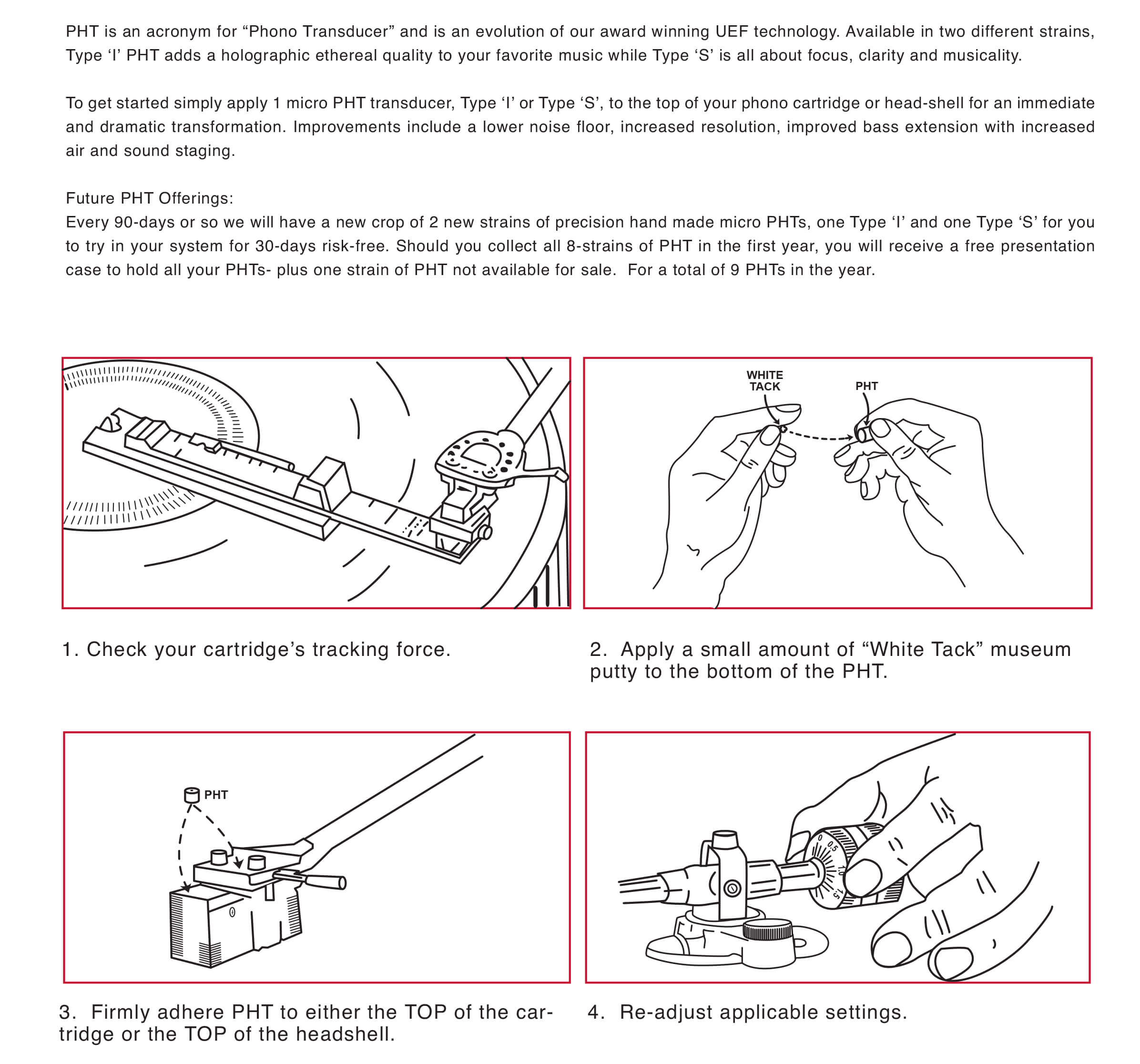 Get more from your analog rig when you add PHT (pronounced ‘POT’) to upgrade your phono cartridge all without ever changing your phono cartridge. Simply apply one PHT -or- Phono Transducer, either Type ‘I” or Type ‘S’ atop your phono cartridge or head-shell and immediately hear a dramatic shift in presentation. Of course like all UEF based tech you hear a lower noise floor, increased resolution, and improved bass extension with increased air and soundstaging. Available in two distinct strains, the Type ‘I’ Black Widow PHT’s add holographic realism to your recordings while Type ‘S’ Green Dream is all about focus, clarity, and musicality.