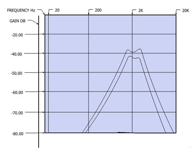Figure 2: These two curves show the crosstalk from the woofer to the tweeter. Crosstalk from a bi-wire configuration is represented with the lower curve.
