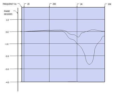 Figure 4: This simulation is based on the diagram in figure 3. Here you can see that a phase difference arises when bi-wiring is used. The phase difference is largest just above the crossover frequency, due to the inductance of the cable, combined with the capacitance of the high pass filter. The inductance of the low-pass filter is represented in this range when a single wire is used. The most probable reason for the capricious sound of bi-wiring is that in addition to a steady state error, another, transient induced phase error between the cables will appear when playing music. This changes the dispersion pattern of the speaker output. The human ear is very sensitive to such phenomena.