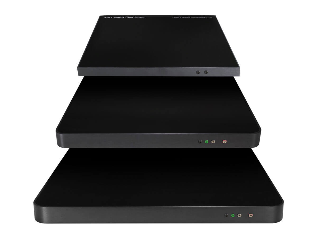 Tranquility Base is an engineered platform hand built in our California factory consisting of a multi-layer laminate to isolate your components from harmful vibrations with a machined and brushed aluminum base and rim that drains mechanical vibrations to ground. Sandwiched inside these layers is an active EM Cell with UEF Tech and Graphene to condition signal inside components, before EM distortion can contaminate your music. Tranquility Base and Tranquility Base XL include a Ground Plane to lower your system’s noise floor further still revealing information and spacial cues you’ve been missing. Simply place any component on a Tranquility Base for an immediate and dramatic improvement in system performance.