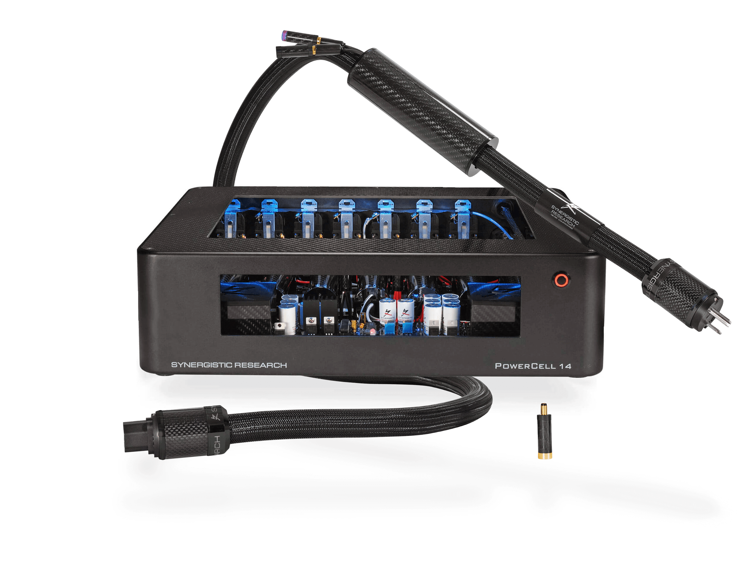 The cable features a Swiss-made power supply powering the Active DC Biased Shield and carbon fiber-encased Active Noise Canceling EM Cell, utilizing UEF Technology from our Purple Fuses development. Our breakthrough Purple Fuse UEF Compound adds harmonic richness while opening the soundstage with extended highs and bass, plus new UEF Matrix Shielding that interacts with surrounding EM fields for the lowest possible noise floor. For enhanced performance, the shield can be optionally grounded to any Synergistic Research Active Ground Block.